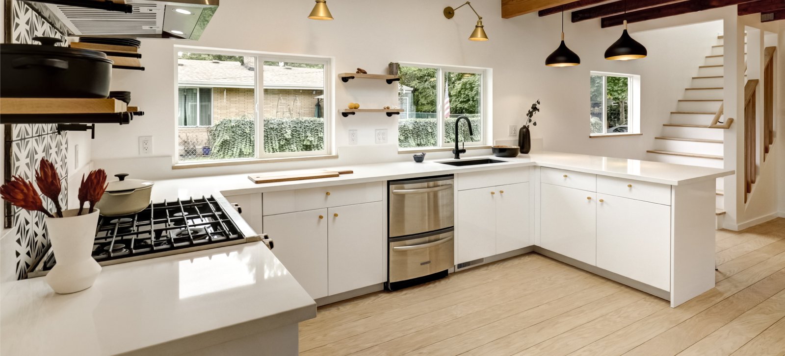 A U-shaped kitchen features three connected walls of cabinets and appliances, maximizing storage and workflow. It’s ideal for medium to large kitchens, offering ample counter space and multiple work zones. To enhance the design, use light colors, open shelving, and corner storage solutions. Add an island if space allows!